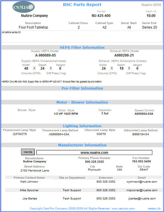 printing of all specifications required to certify most BSC's and Isolators. The spec